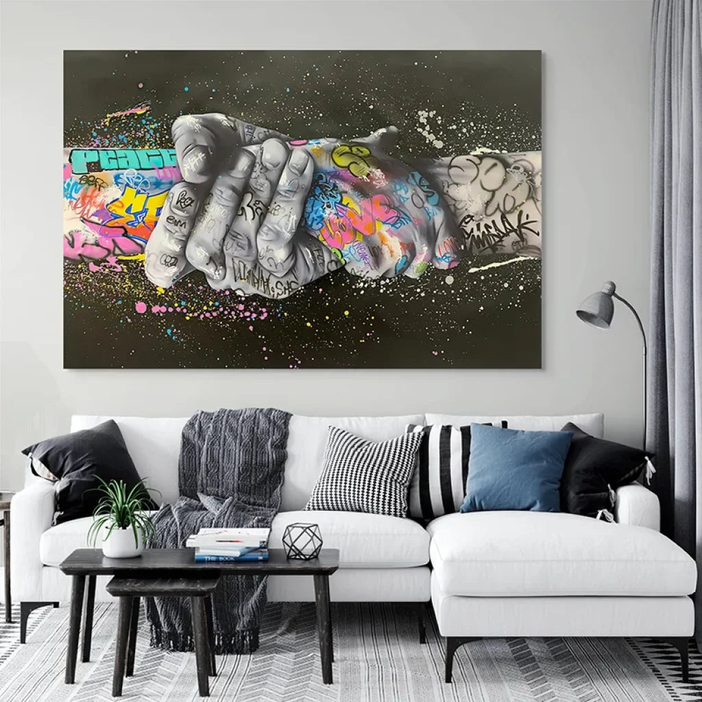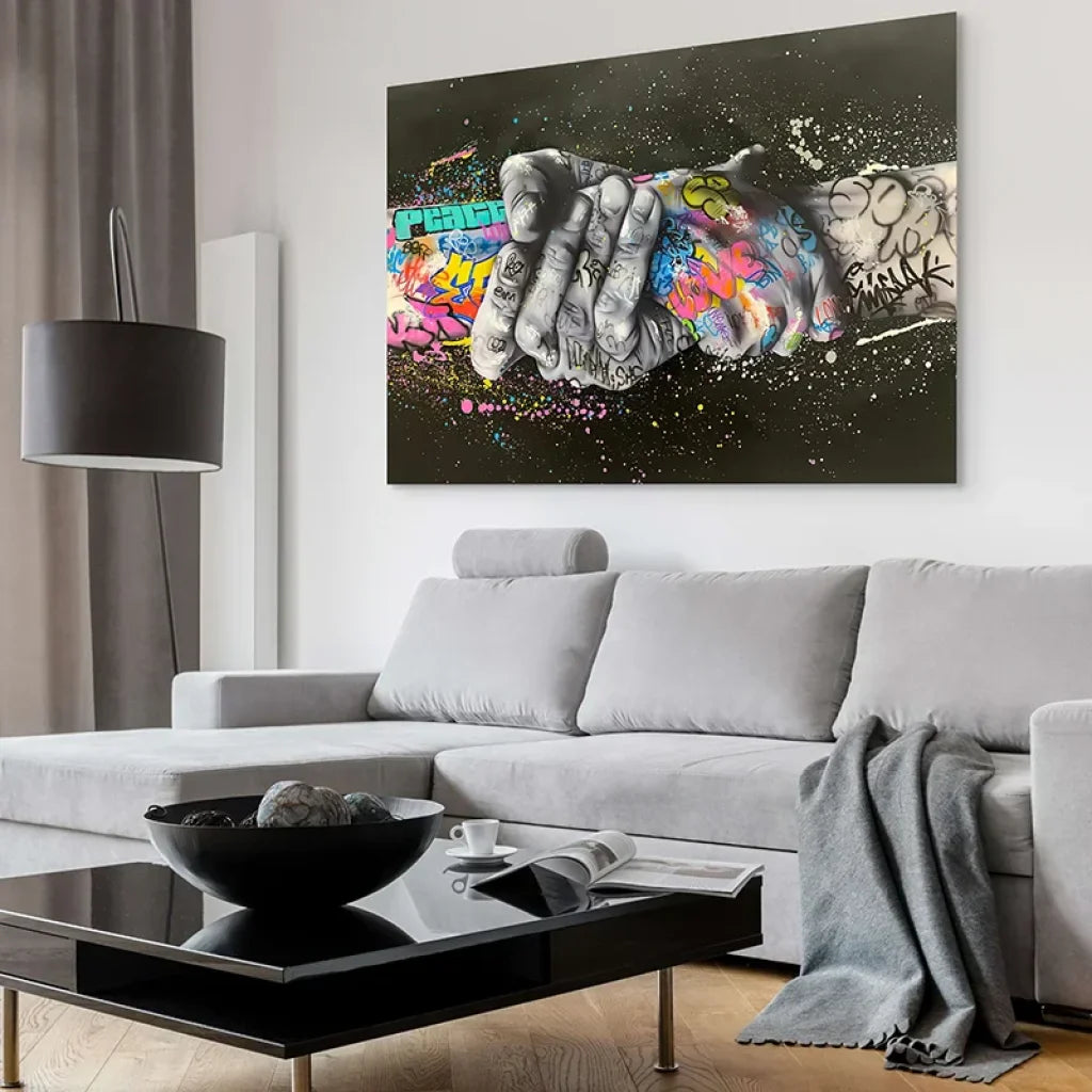 Le tableau Street Art Les Mains Graffiti, un lien d’amitié.