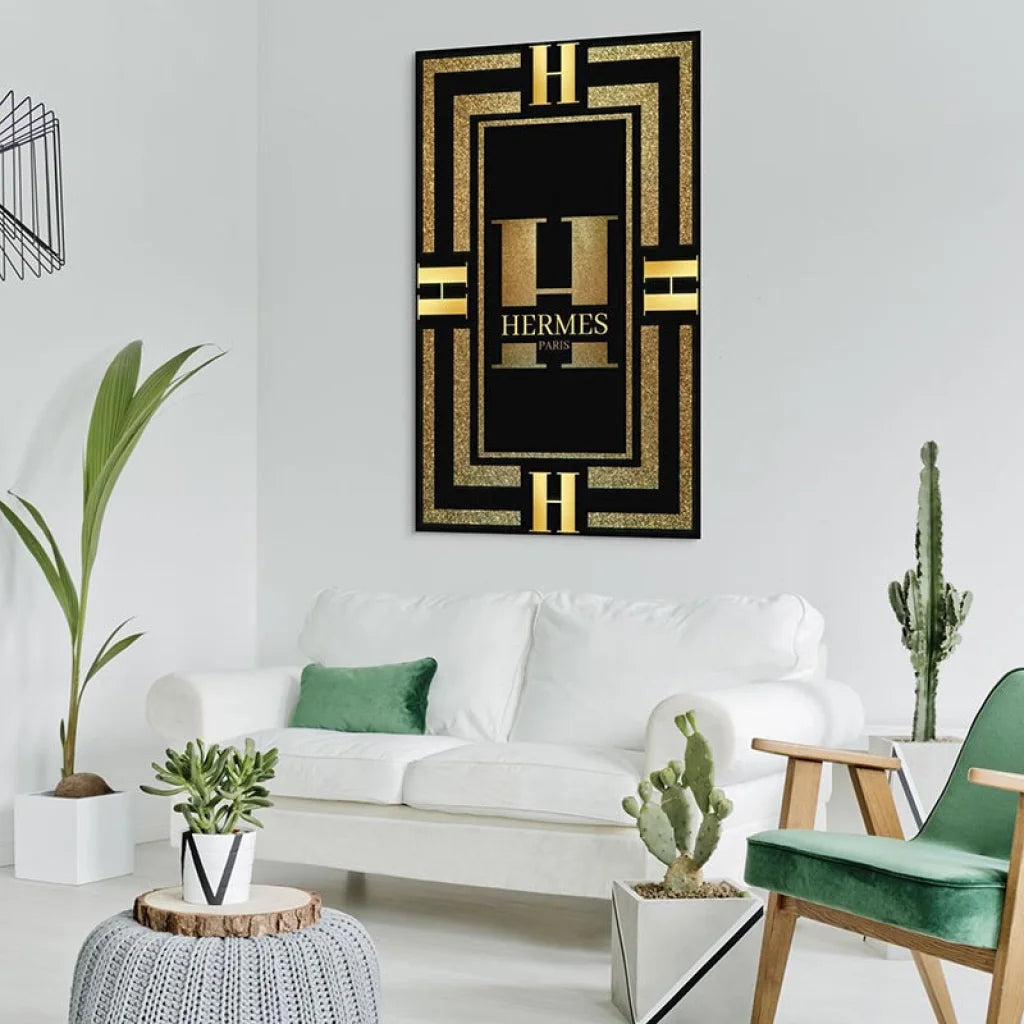 Les tableaux Hermès Or et Hermès Rouge et Noir sont des hommages à l'emblématique maison de mode parisienne Hermès. Le logo Hermès, symbole de l'élégance intemporelle et du prestige, est magnifiquement mis en valeur dans ces compositions visuelles. Chaque tableau incarne le raffinement et l'exclusivité qui sont associés à cette maison de couture de renommée mondiale.
