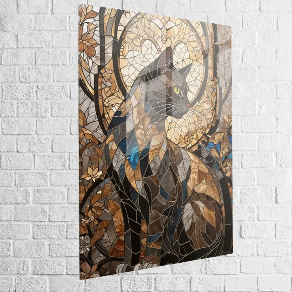 Lumière Féline évoque la majesté du chat et la beauté éternelle de la lumière filtrée à travers un vitrail. Une œuvre vibrante, idéale pour ceux qui veulent mêler art, émotion et amour des animaux.