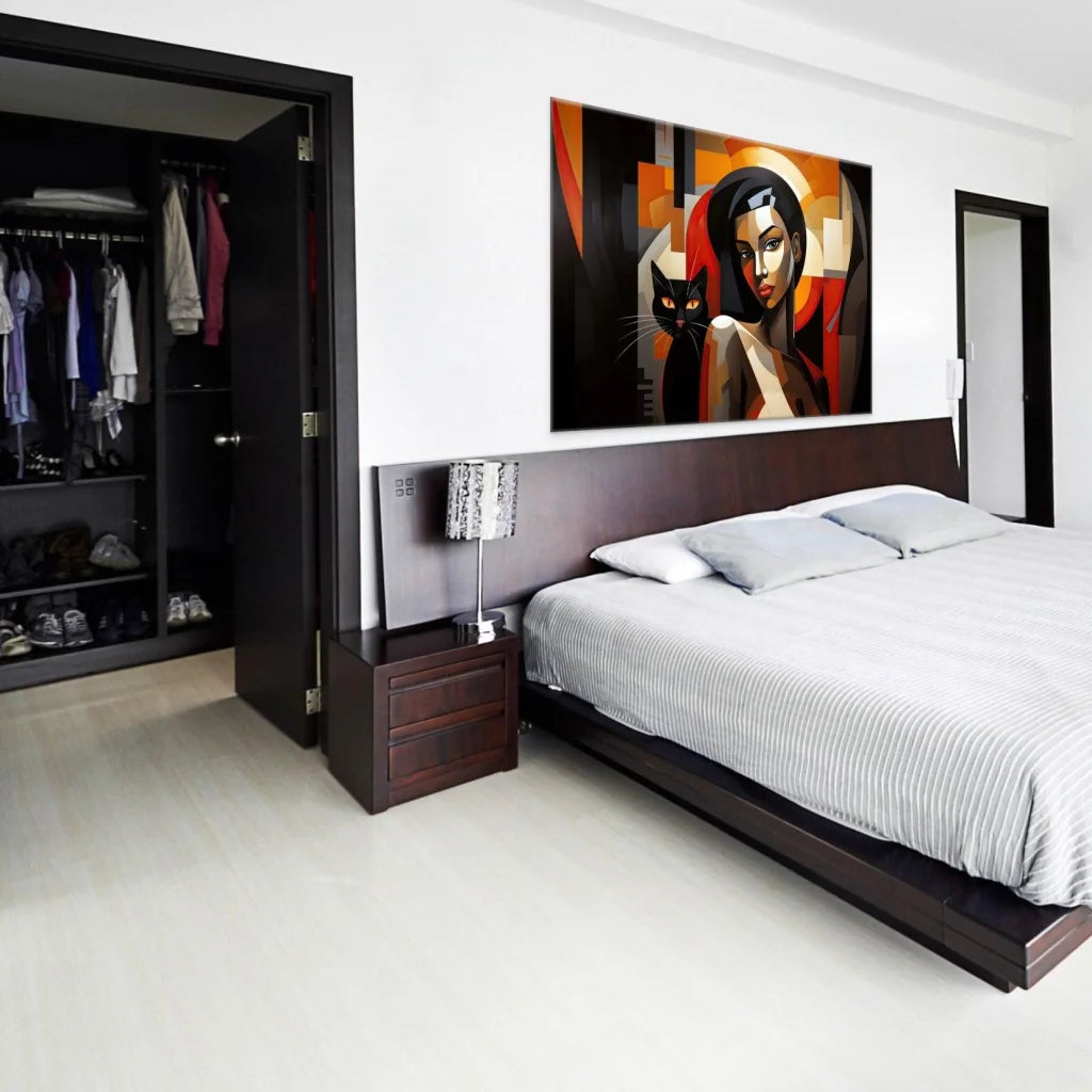 'La femme et son chat' - Une Symphonie de Couleurs pour Votre Salon