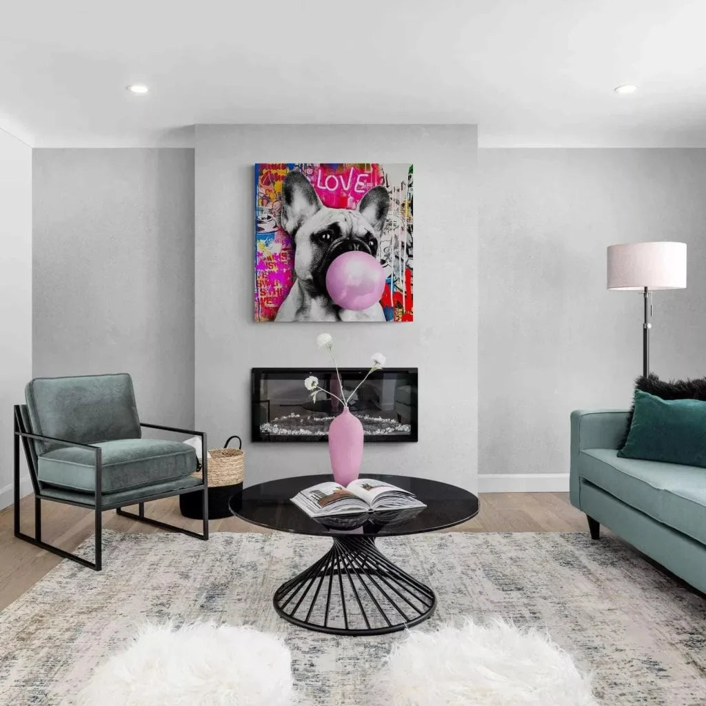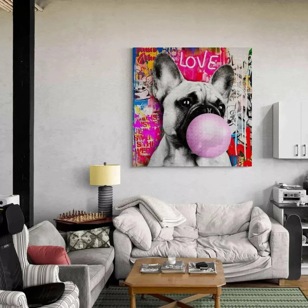 Les représentations d’animaux sont idéales pour garantir une touche gracieuse dans une décoration murale. Avec ce tableau, non seulement vous proposez un look funny, mais vous partagez également un sentiment convivial. Ce tableau représente un mignon Buildog Français en train de faire une boule de gomme. Le concept est tellement original que vous ne pourrez pas vous empêcher de sourire à chaque regard.