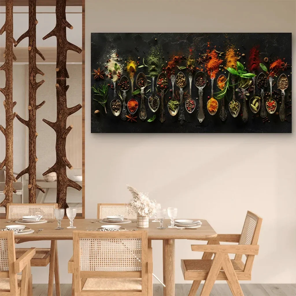Avec le tableau "Symphonie d'Épices", invitez la richesse des épices du monde dans votre décoration intérieure.