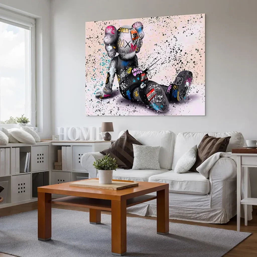 Besoin d’une pièce forte qui reste douce à l’œil ? Le Rêveur Assis capture un personnage pop posé au sol, couvert de tags et d’éclaboussures. Un vrai point focal pour une déco urbaine moderne : couleurs maîtrisées, détails nets, ambiance créative. (Œuvre inspirée de l’esthétique urbaine contemporaine, non affiliée.)