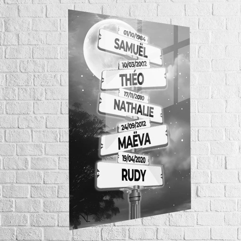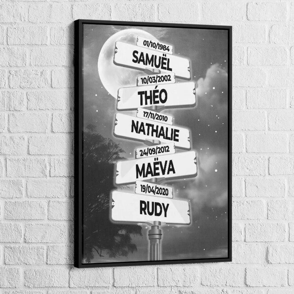 Idéal pour offrir ou pour ajouter une dimension personnelle et cosmique à votre décor, "Voyage Céleste" est une célébration de la vie et de l'espace, où chaque nom devient une étoile dans votre firmament familial.