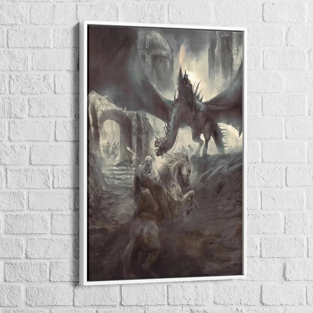 Ce tableau n'est pas seulement une représentation du combat entre Gandalf et le Roi Sorcier ; il est aussi un hommage à la richesse de la Terre du Milieu, un monde où coexistent des histoires de courage, de ténèbres et d'espoir. Chaque aspect de cette œuvre reflète la profondeur des "Contes et Légendes Inachevés" de Tolkien.