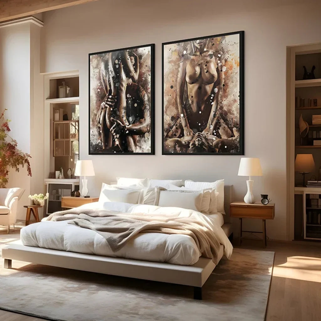 Chaque visuel est vendu séparément . Sélectionnez le(s) tableau(x) qui vous parle(nt) le plus : Étreinte Abstraite , Muse Debout ou Lien Sensuel . Vous pouvez commencer par un seul tableau sexy , puis compléter plus tard : les trois œuvres partagent la même écriture visuelle et s'accordent naturellement.
