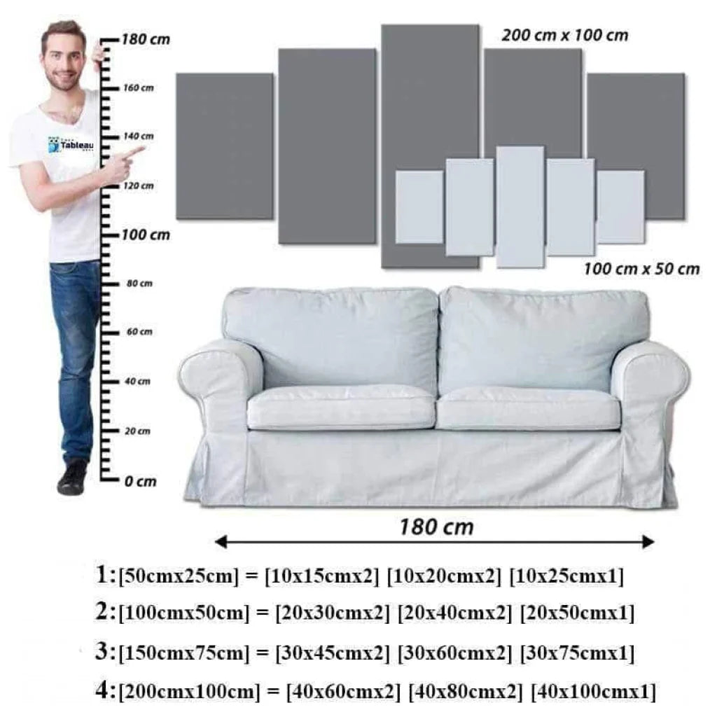 - Pour s’adapter au mieux à votre intérieur, cette collection de toiles se décline en 4 tailles :