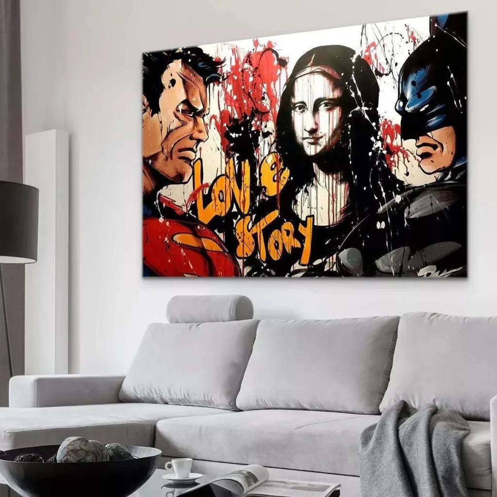 Fini les graffitis sur les murs extérieurs des immeubles de banlieue. Le street art s’invite désormais dans nos intérieurs les plus luxueux. Ce tableau vous emmène à la découverte de la magie que propose l’art des rues. Ici, la seule limite est l’imagination. C’est pourquoi, on découvre justement des personnages de comics comme Superman et Batman illustré avec des chefs-d’œuvre artistiques comme la Joconde. L’esthétisme est extraordinaire. La qualité d’impression offre un visuel en haute définition. Sur vos murs, ce tableau intriguera vos convives.