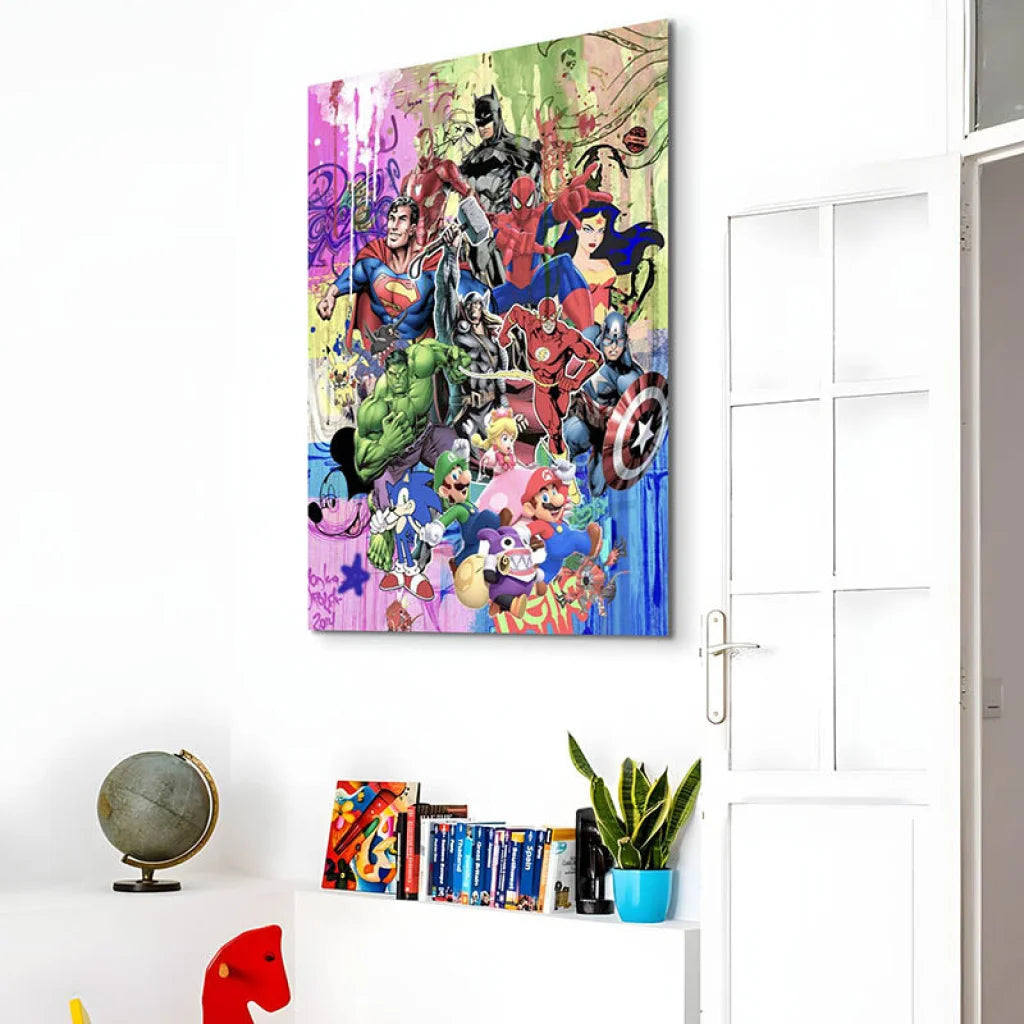 Que vous soyez fan de super-héros, de jeux vidéo ou de dessins animés iconiques, ce tableau Street Art – Urban Pop Icons est fait pour vous ! Avec ses couleurs vives, son effet graffiti et son design audacieux, il capture toute l’énergie et l’héritage des personnages les plus cultes de la pop culture.
