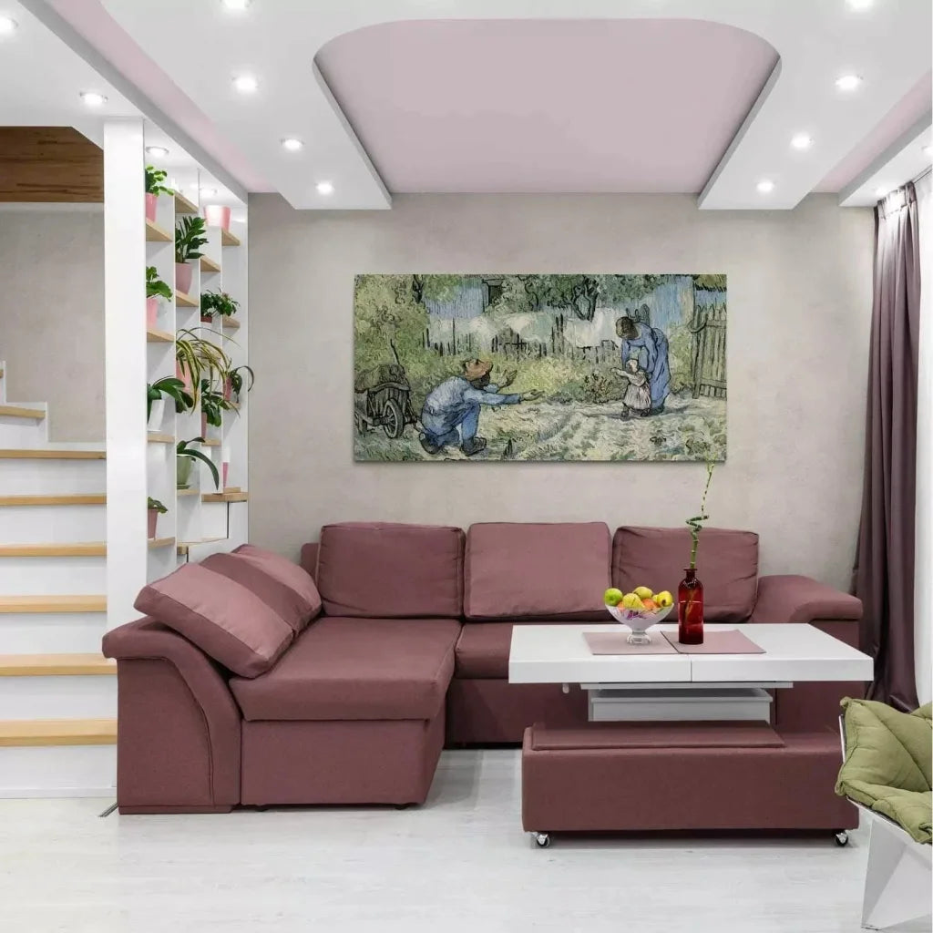 Voici le tableau de Van Gogh Les premiers pas de Millet, qu'il a peint en 1890. Cette belle représentation de la famille française est créée par notre studio français . Le père tend la main à son enfant pour qu'il le rejoigne dans le champ de fouille. Si vous ne l'avez pas encore vu au Metropolitan Museum of Art de New York, vous pouvez maintenant avoir ce tableau chez vous.