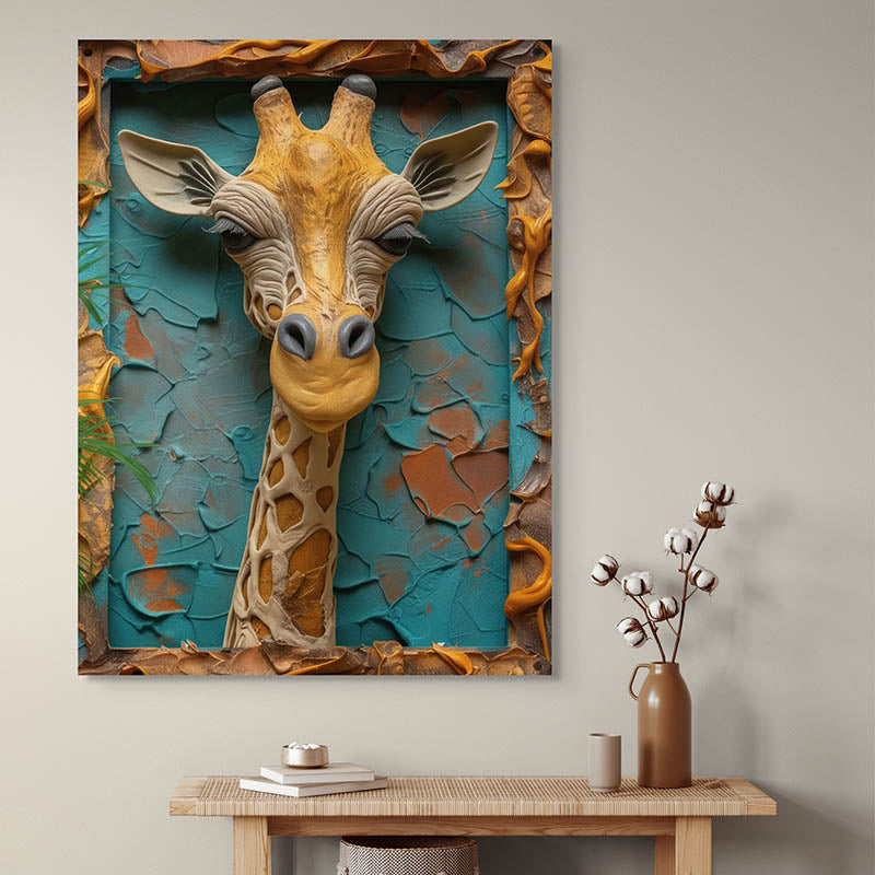 Ce tableau 3D n'est pas seulement une illustration, c'est une véritable sculpture murale. Le relief de la girafe crée une illusion de profondeur qui capte l'attention et éveille la curiosité. C'est la pièce parfaite pour devenir le point central de votre décoration. -